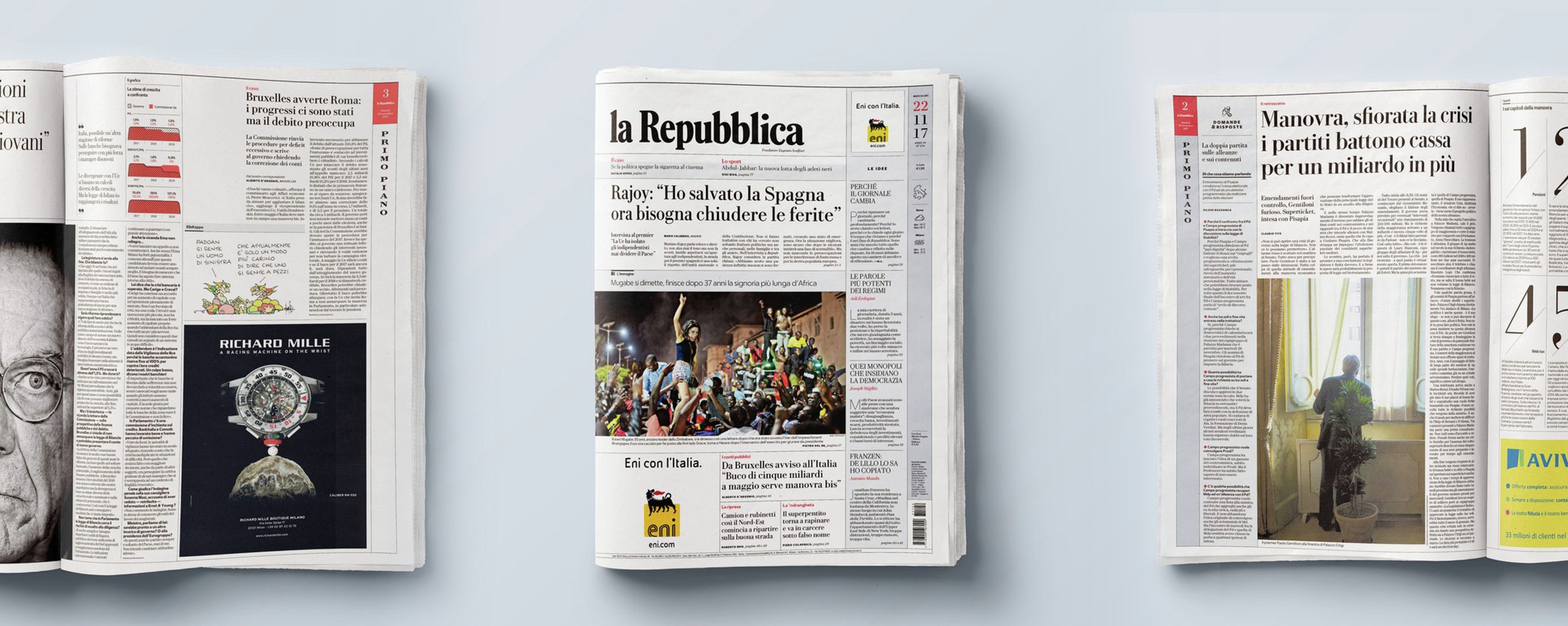 In 2017, Commercial Type created a new typographic palette for the redesign of La Repubblica, a popular national daily newspaper in Rome, Italy.